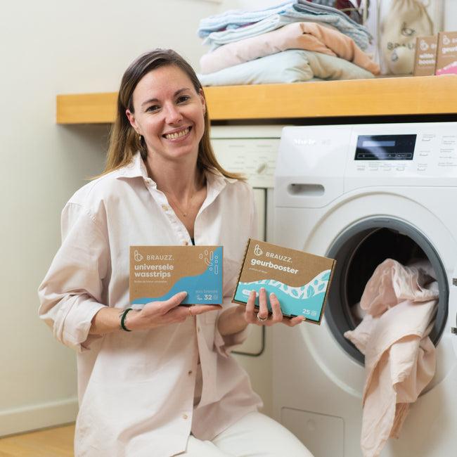 The natural clay in the fragrance boosters does not dissolve, but washes away. This means they can easily get stuck to the rubber of your washing machine, for example, leaving residue. The laundry net prevents the pods from getting stuck and leaving residue.