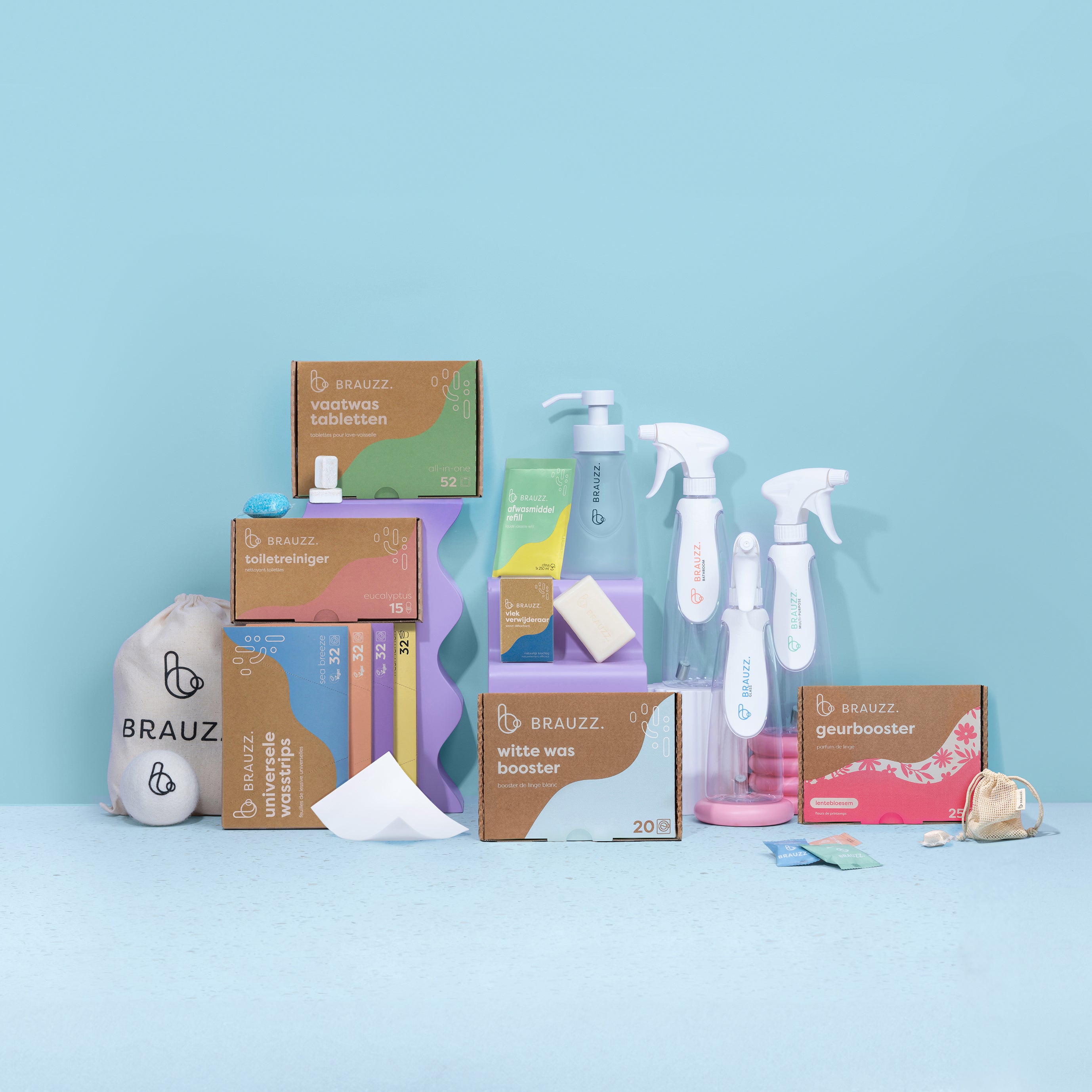 De BRAUZZ. was essentials bevatten alle producten die jij nodig hebt om elke keer opnieuw stralend schoon wasgoed te bekomen met een heerlijk frisse frisse wasgeur 🌸