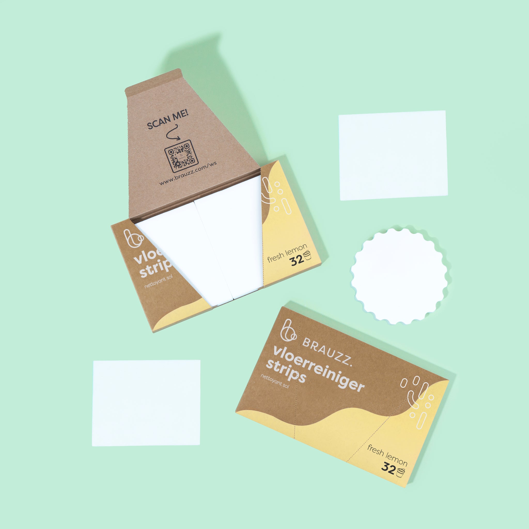- Een doosje met 32 wasstrips, goed voor 32 frisse en duurzame wasbeurten
