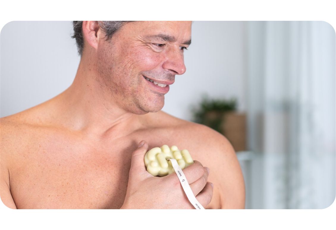 Masseer jouw huid in met de bar. Wrijf het product goed in zodat de ingrediënten even kunnen inwerken.