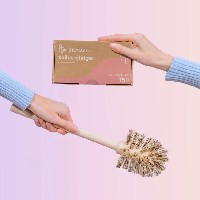 In een kartonnen verpakking passen 15 dosissen toiletreiniger. Zo klein dat het door de brievenbus geleverd kan worden.
